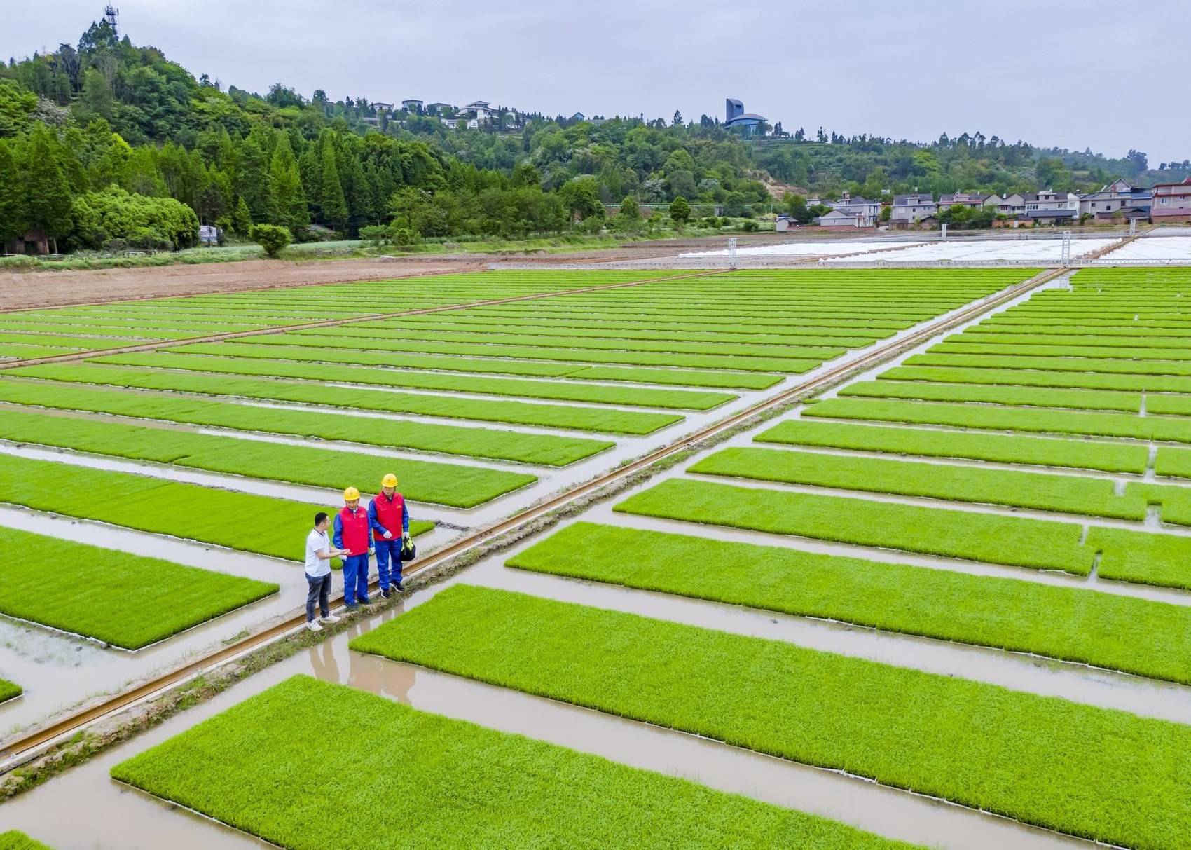 國(guó)網(wǎng)眉山供電公司工作人員到洪雅止戈農(nóng)事服務(wù)中心育秧中心,了解用電需求。(王鴻飛/攝)